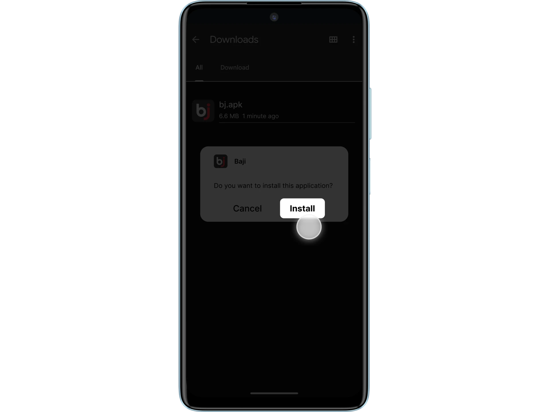 Go back to the ‘Downloads’ folder on your mobile device, tap on the 1win app file, and then verify the installation in the pop-up window.